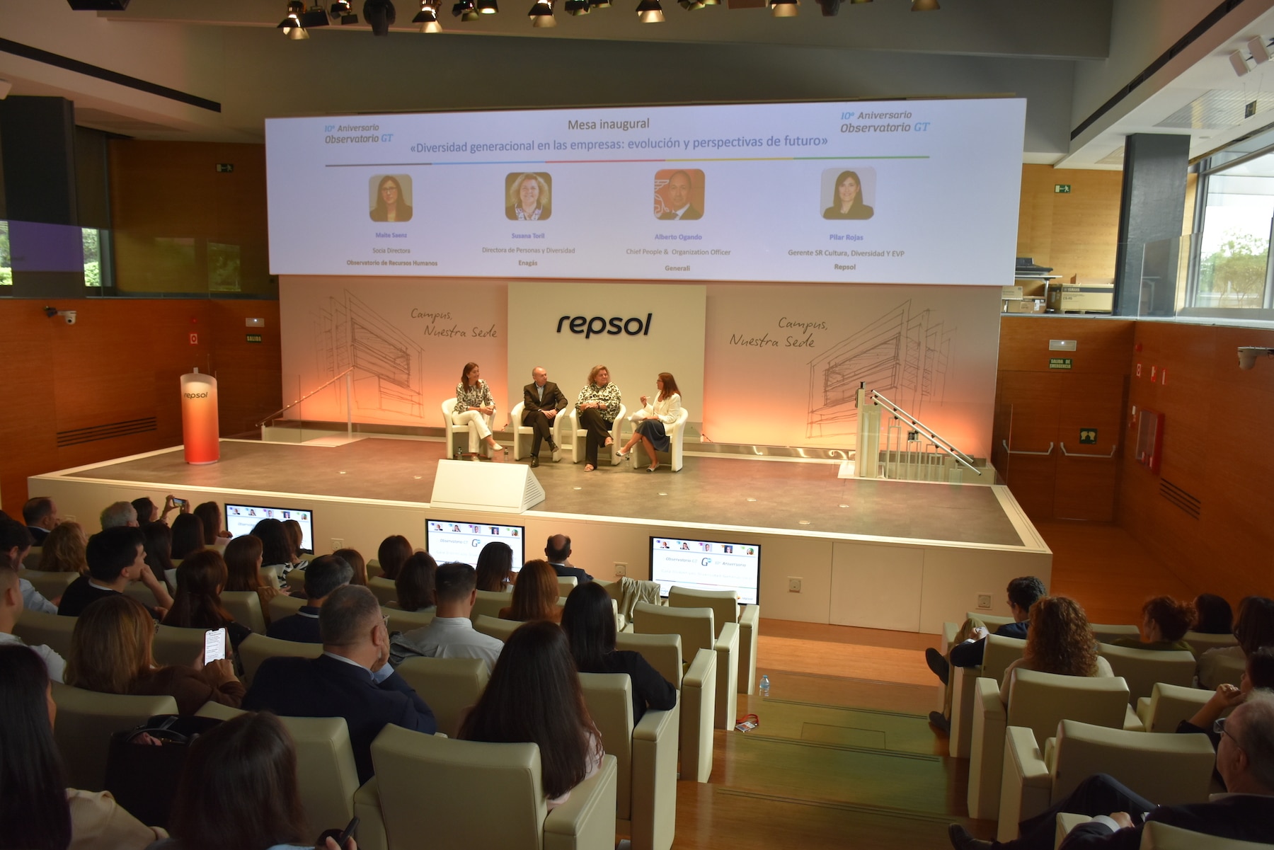 Como ya hemos contado en un post anterior, el Observatorio Generación & Talento celebró en la sede de Repsol su Gala del 10º Aniversario. El evento coemnzó con la mesa inaugural “Diversidad generacional en las empresas: evolución y perspectivas de futuro”, con la participación de: Susana Toril (Enagás), Alberto Ogando (Generali) y Pilar Rojas (Repsol), quienes coincidieron en que la flexibilidad, la coherencia y la escucha activa son los ejes que definirán la gestión de la diversidad en los próximos años. La mesa estuvo moderada por Maite Sáez, directora del Observatorio RH. Protagonizaron la gala, la entrega de los Premios Generacción y de los certificados a las empresas que han firmado el Código de Principios en los últimos meses,